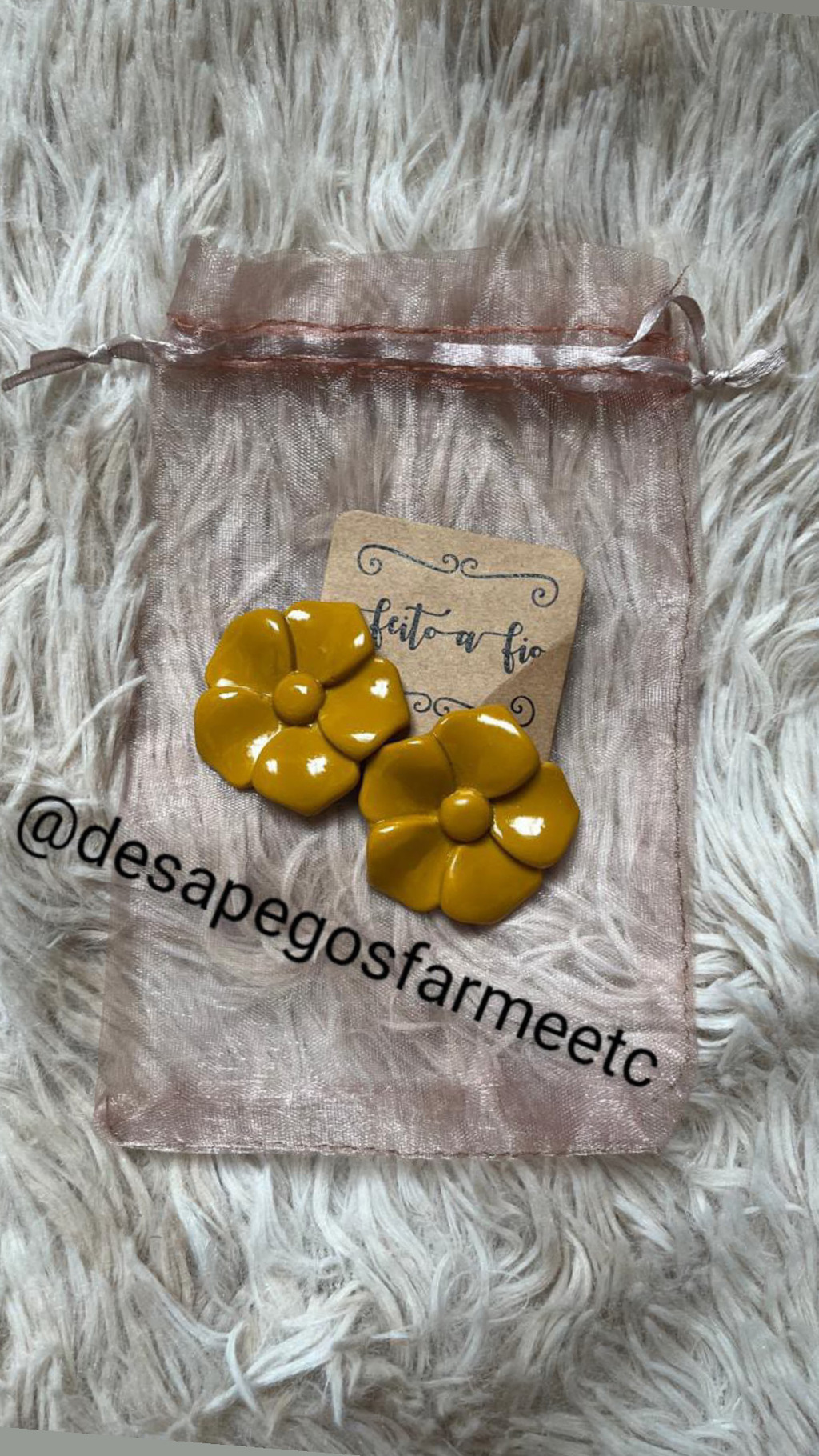Brinco em formado de flor da marca Feito a Fio, novo, sem uso.