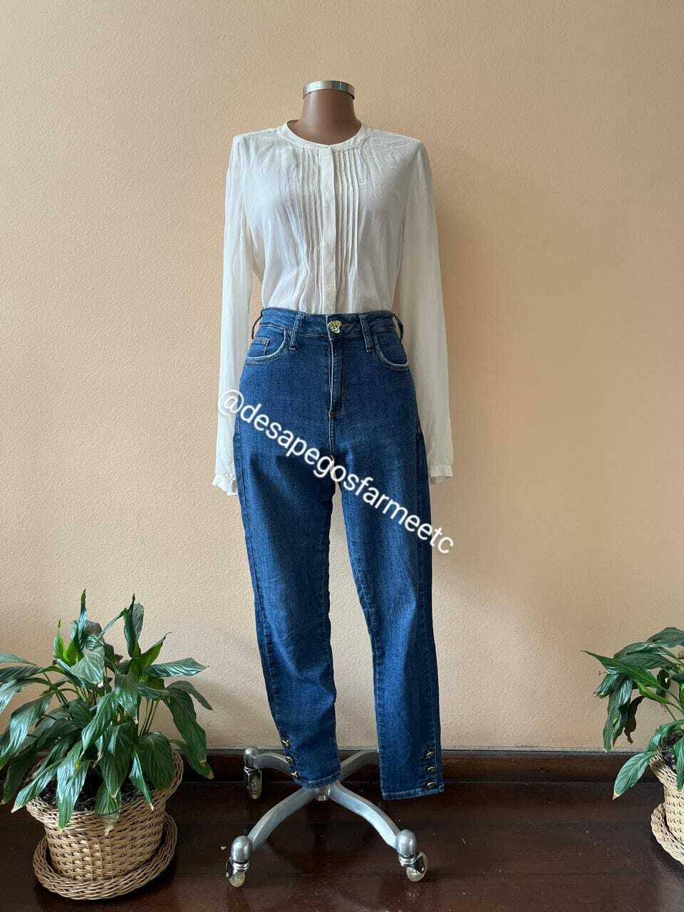 Calça linda da marca A.Collection Renner, disponível no tamanho 40. Possui botões em formato de coração. Usada, não possui avarias. Tecido possui elastano. Medidas Aproximadas: Cintura: 74-80 cm Quadril: 96-104 cm Comprimento: 97 cm