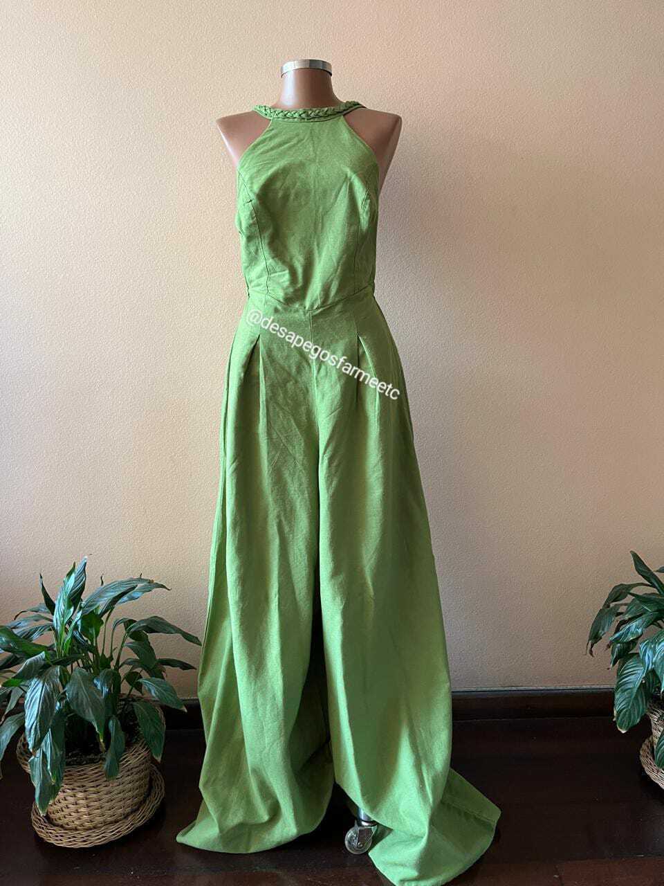 Macacão lindo pantalona da marca Farm, disponível no tamanho P, mas veste melhor M, modelagem maior. Usado uma vez, em estado de novo. Tecido: 70% viscose e 30% linho. Medidas Aproximadas: Busto: 102 cm Cintura: 88 cm Quadril: 134 cm Comprimento: 154 cm