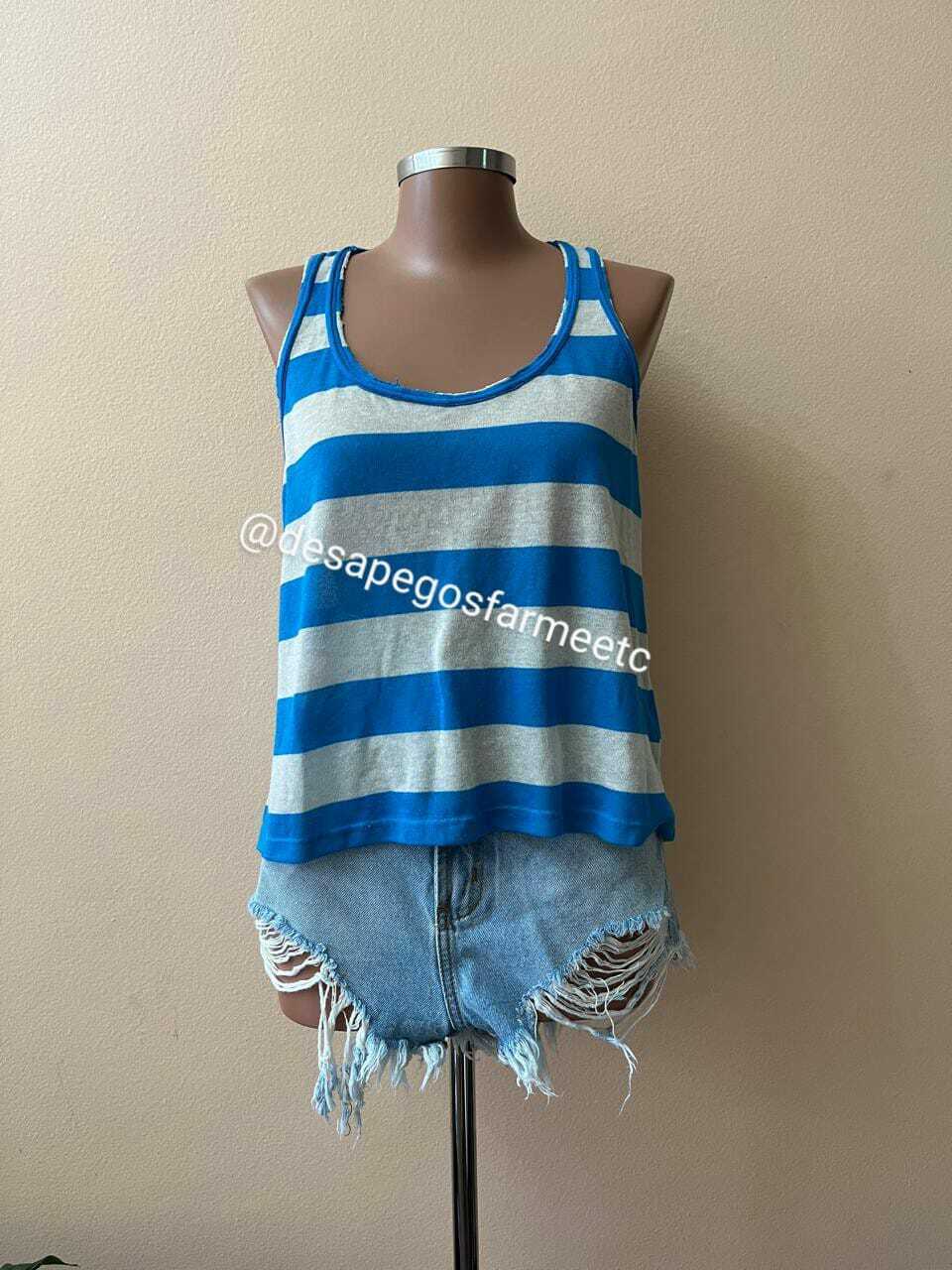 Regata Cropped Listras da marca Farm, disponível no tamanho G. Nova, com tag. Tecido 50% algodão e 50% poliéster. Medidas Aproximadas: Largura: 104 cm Comprimento: 52 cm