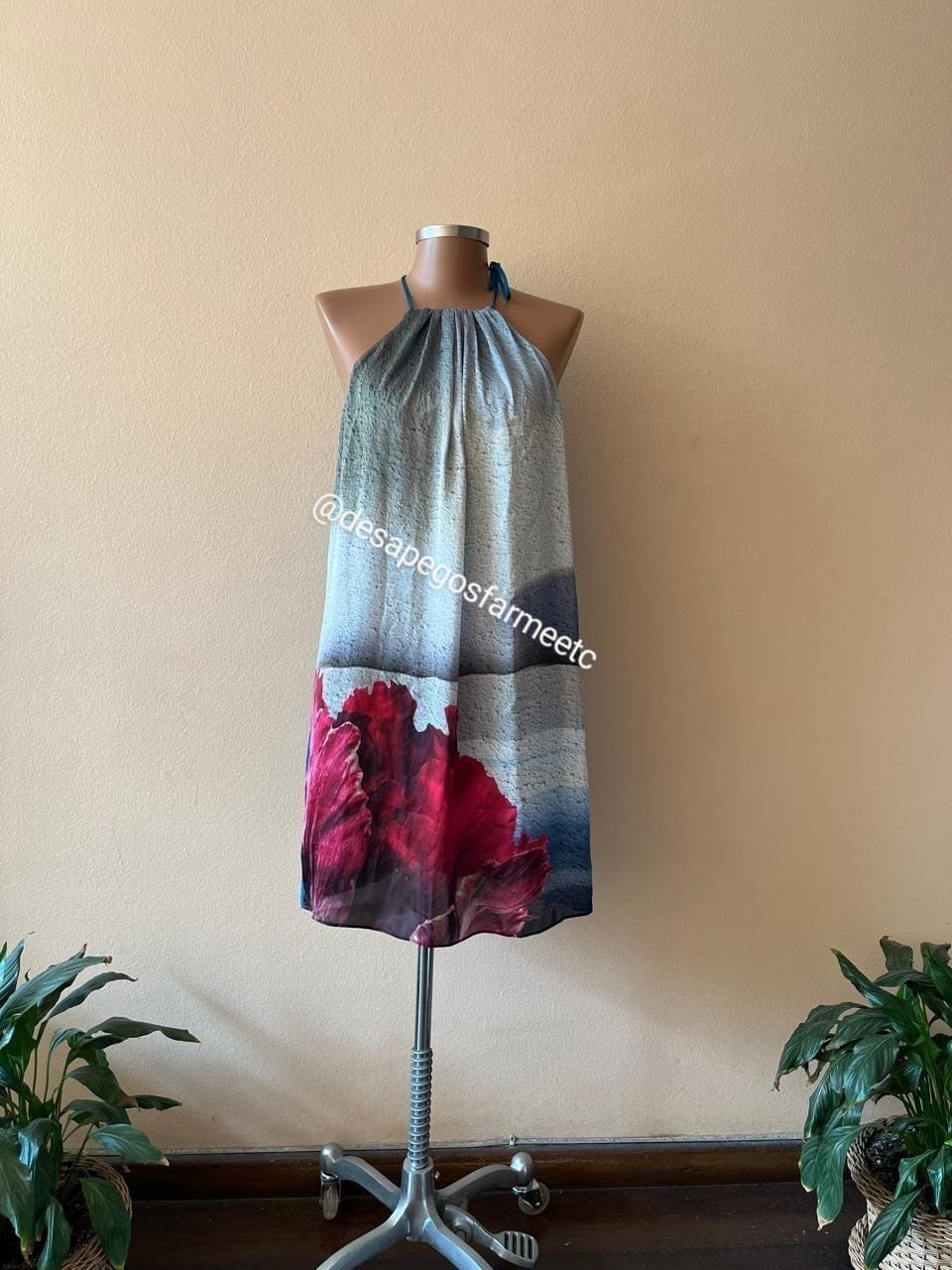 Vestido curto da marca FYI, disponível no tamanho 40. Usado, em perfeito estado. Tecido: 100% poliéster na frete e 100% viscose atrás, forro 100% viscose. Medidas Aproximadas: Busto: 98 cm Cintura: 110 cm Quadril: 114 cm Comprimento: 92 cm