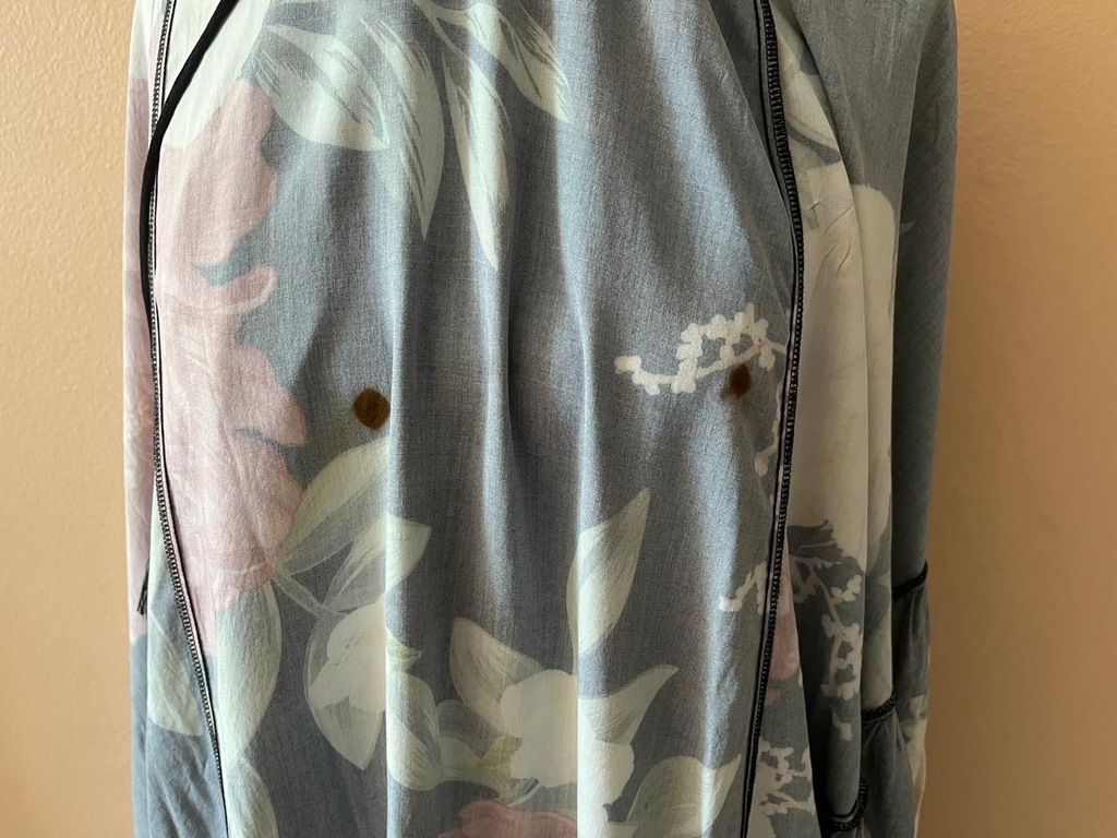 Vestido transpassado estampa Doce Veraneio da marca Farm. Disponível no tamanho P, tecido 100% viscose. Ele possui duas manchas internas, fora isso está em perfeito estado.